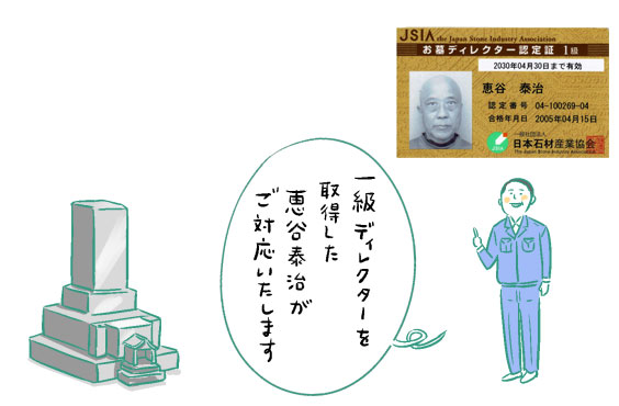 お墓の疑問や不安で悩まれている方が、安心してお墓づくりできるようにお手伝いするのが、お墓ディレクターです。